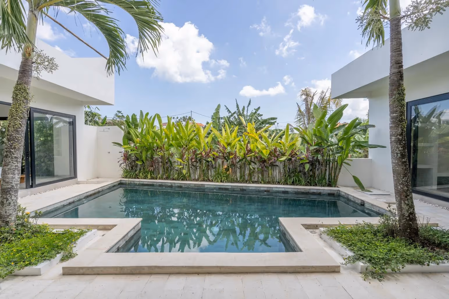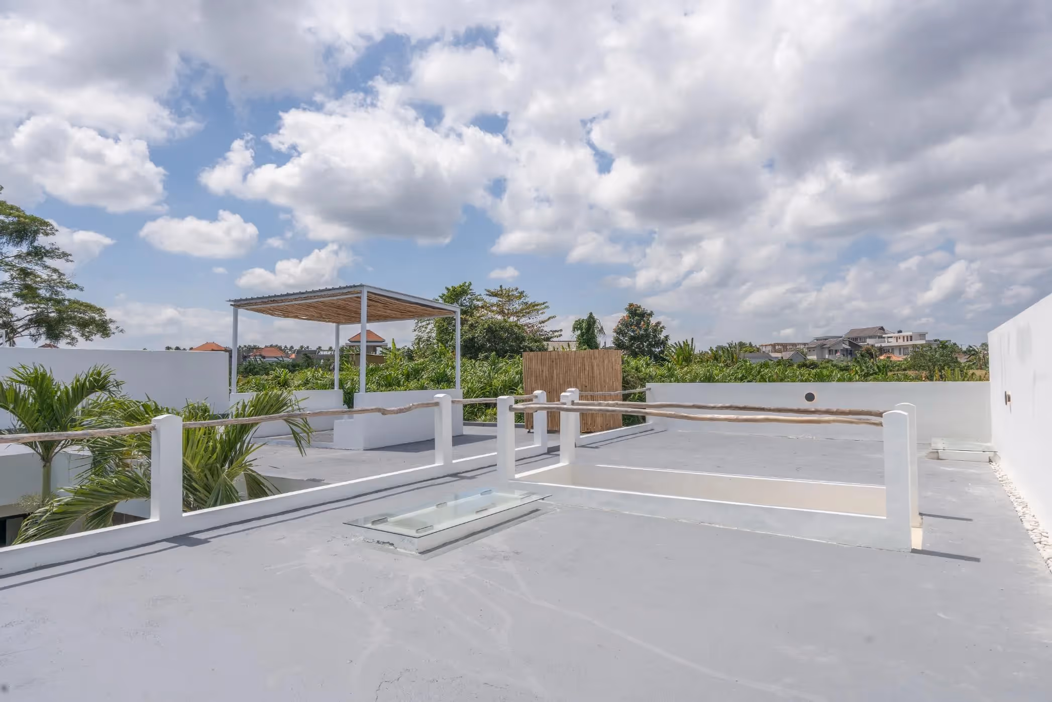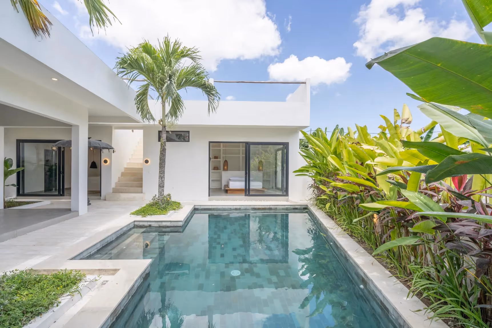 Dieses moderne tropische Haus verfügt über 189 m² Wohnfläche auf 300 m² Grundstück mit einem privaten Pool, einer geräumigen Dachterrasse und 3,5 Bädern. Die Architektur kombiniert klare weiße Linien mit natürlichen Materialien und schafft so eine warme und dennoch moderne Atmosphäre, ideal für ein entspanntes Leben auf Bali.