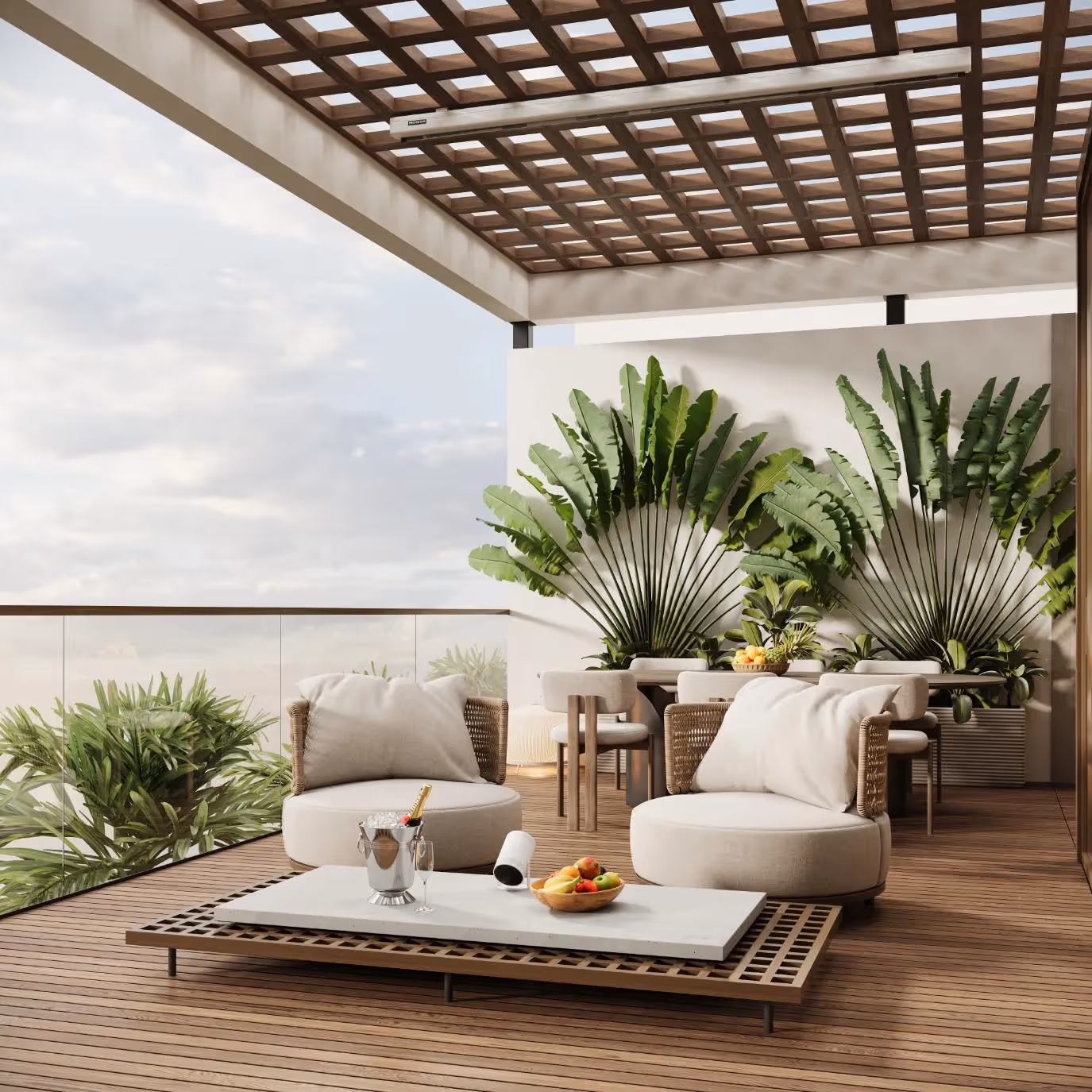 Die Villen mit einem Schlafzimmer bieten 76 m² Wohnfläche auf 60 m² Grundstück und sind in zwei Konfigurationen erhältlich: Einige verfügen über einen privaten Zugang zum Dach, ideal zum Entspannen bei Sonnenuntergang oder zum Essen im Freien. Die Villen mit 2 Schlafzimmern verfügen über 87 m² Wohnfläche auf einem 66 m² großen Grundstück. Alle Einheiten sind Teil einer geschlossenen Wohnanlage mit Gemeinschaftspool und Sicherheit.