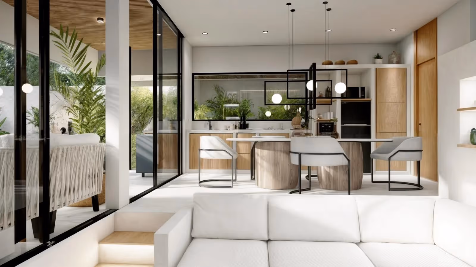 Die Villa erstreckt sich über 110 m² Gebäudefläche auf einem 125 m² großen Grundstück und verfügt über einen geräumigen Wohn- und Essbereich mit raumhohen Fenstern, eine moderne Küche und direkten Zugang zu einem privaten Pool und einer versunkenen Lounge, die von einer üppigen tropischen Landschaft eingerahmt wird. Die Schlafzimmer verfügen über Einbauschränke, ein eigenes Bad und einen beruhigenden Blick auf die grüne Umgebung.