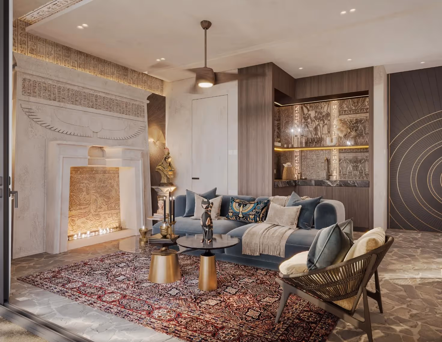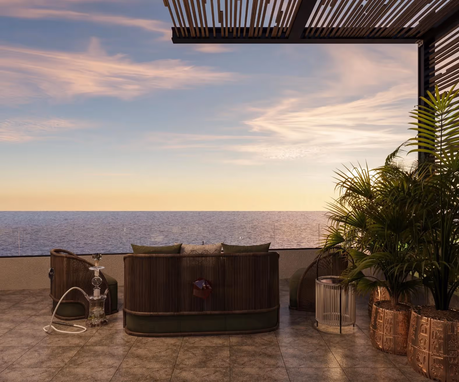 Mit 166 m² Baufläche auf 103 m² Grundstück vereint das Design der Villa goldene Akzente, von Hieroglyphen inspirierte Wände und skulpturale Details, die Charakter und Raffinesse verleihen. Der offene Wohnbereich mündet in eine private Terrasse mit Pool und Blick auf den endlosen Horizont. Im Obergeschoss bietet die Lounge auf dem Dach ein 180°-Ozeanpanorama, ideal für Zusammenkünfte bei Sonnenuntergang oder ruhige Abende am Meer.