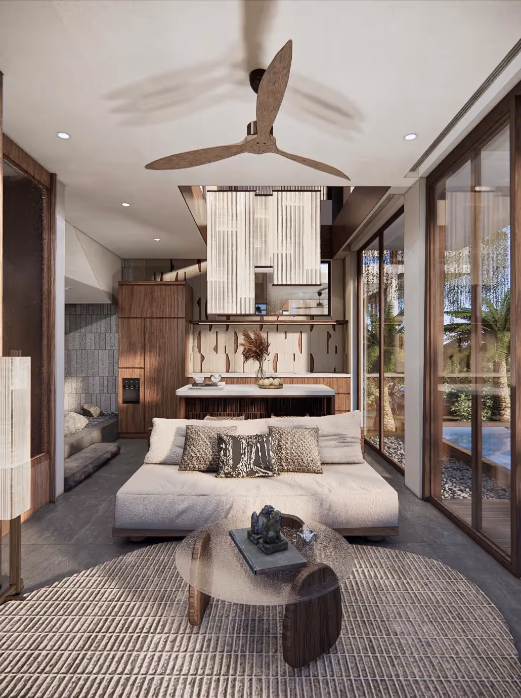 Die Villen mit 2 Schlafzimmern verfügen über 89,4 m² Baufläche auf 168,5—171,6 m² Grundstück. Die Villen mit 3 Schlafzimmern bieten 113,9 m² auf einem 214,6—216,4 m² großen Grundstück. Jedes Haus wird komplett möbliert geliefert und verfügt über helle Wohnbereiche, raumhohe Fenster, eine moderne Küche, viel Stauraum und ruhige Schlafzimmer, die in natürlichen Farbtönen gehalten sind. Jede Villa verfügt über einen privaten Pool, einen privaten Parkplatz und einen privaten Fahrradparkplatz, was für zusätzlichen Komfort und Wohnlichkeit sorgt. Das Eigentum wird für 25 Jahre mit einer garantierten Verlängerung verpachtet, was es zu einer sicheren Wahl für diejenigen macht, die den Kauf einer Immobilie auf Bali in Betracht ziehen.