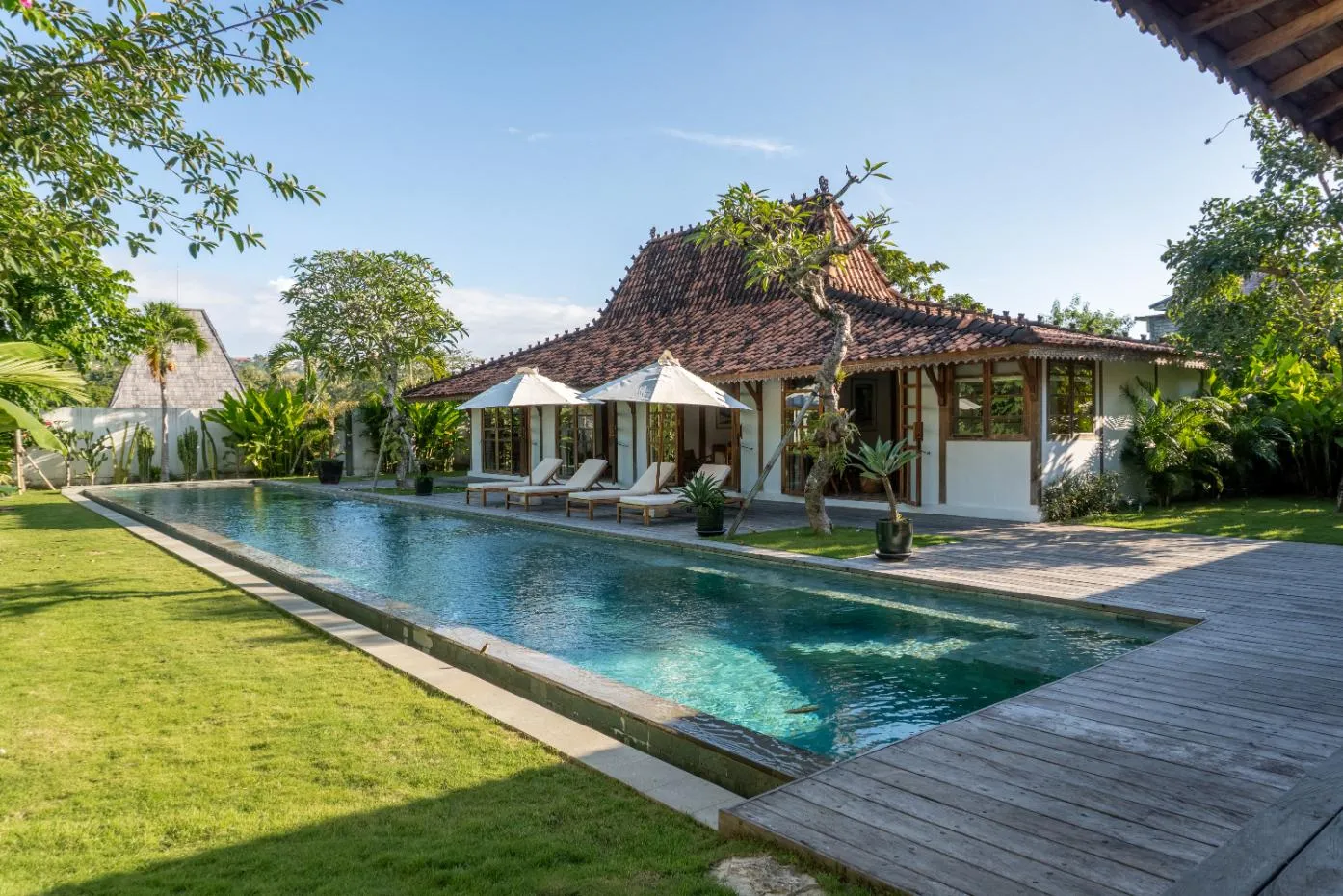 Santiya in Bingin — Breloque intemporelle en teck avec 3 chambres et bail de 38 ans