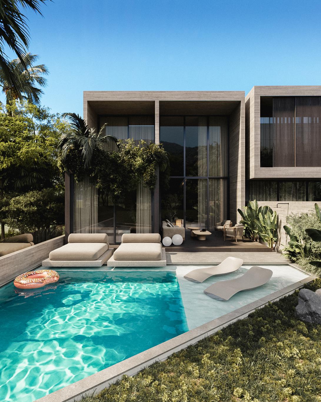 Les résidents peuvent profiter d'un mélange unique d'équipements privés et communs. Certaines villas possèdent leur propre piscine privée, tandis que la communauté dispose d'une piscine centrale de style lagon entourée d'un aménagement paysager de style désertique et de jardins de cactus. Un espace bien-être dédié propose un spa intérieur serein avec des baignoires revêtues de pierre, des douches et un éclairage d'ambiance pour une expérience digne d'un complexe hôtelier.