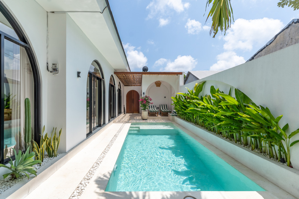 La Maison Arta est une villa de 2 chambres entièrement meublée située à Ungasan. Elle présente un design raffiné d'inspiration méditerranéenne avec des arches douces et des tons neutres chauds. Située sur un terrain de 225 m² avec un bâtiment de 160 m², cette propriété à bail a encore 29 ans, plus extension. La villa dispose d'une piscine privée, d'un salon clos et d'un parking privé, ce qui la rend idéale à la fois pour la vie résidentielle et pour un investissement prêt à emménager dans la péninsule sud de Bali.