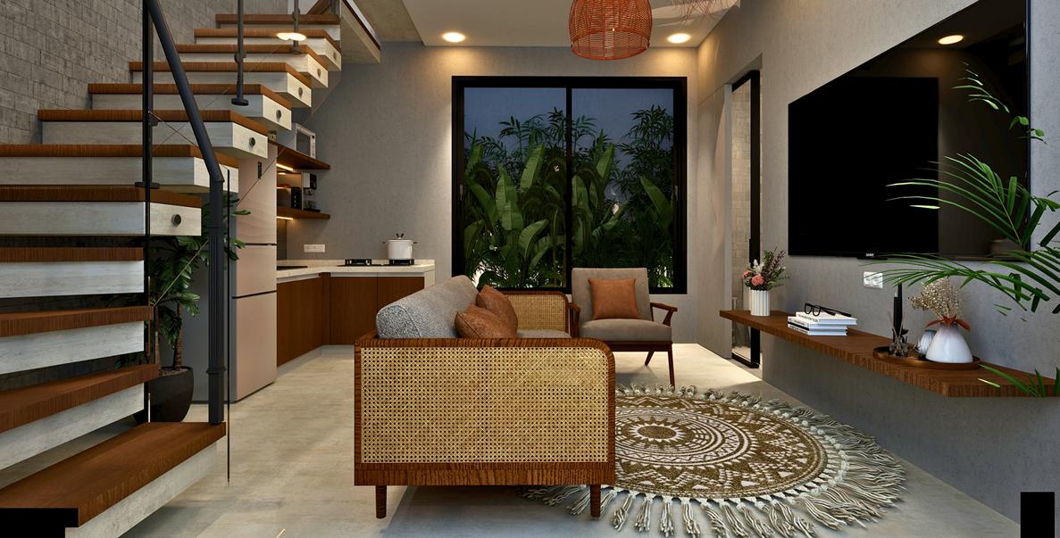 Each villa sits on 100 sqm of land with a 84 sqm two-storey building, featuring 2 bedrooms and 2 bathrooms. The layout is designed to maximize space efficiency, with an enclosed living area that connects seamlessly to the outdoor pool. Large windows bring in natural light, while the overall design maintains a clean and modern tropical aesthetic. The private pool adds to the villa’s appeal, creating a comfortable environment for both residents and guests.