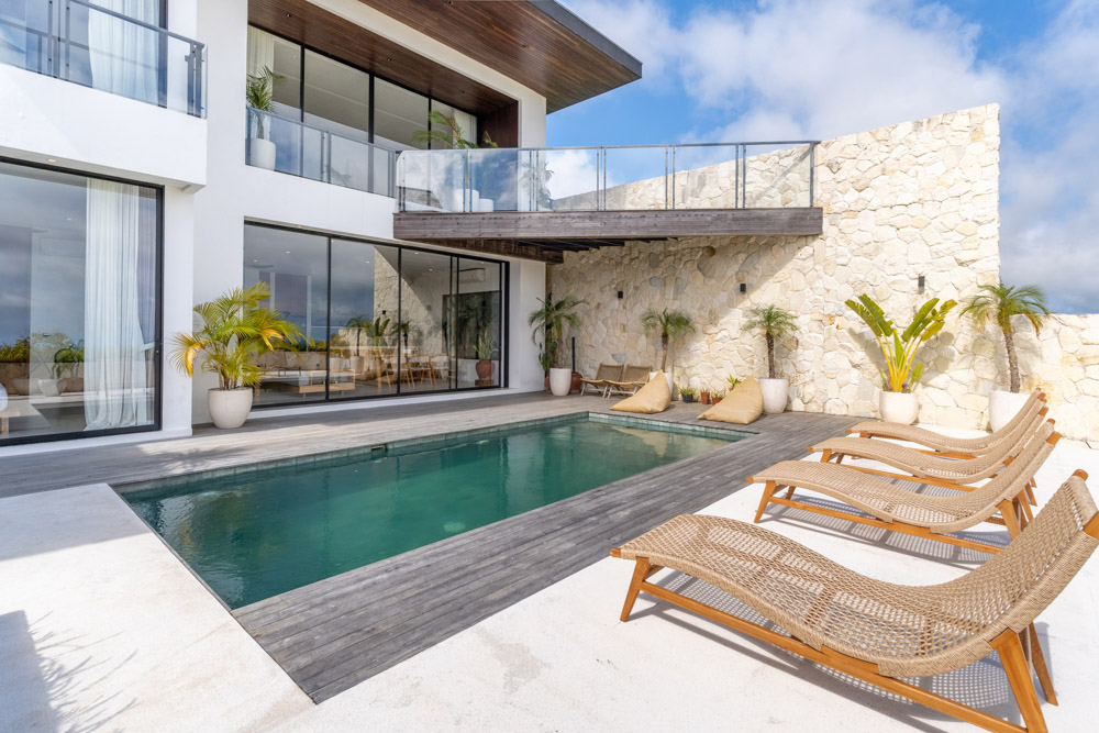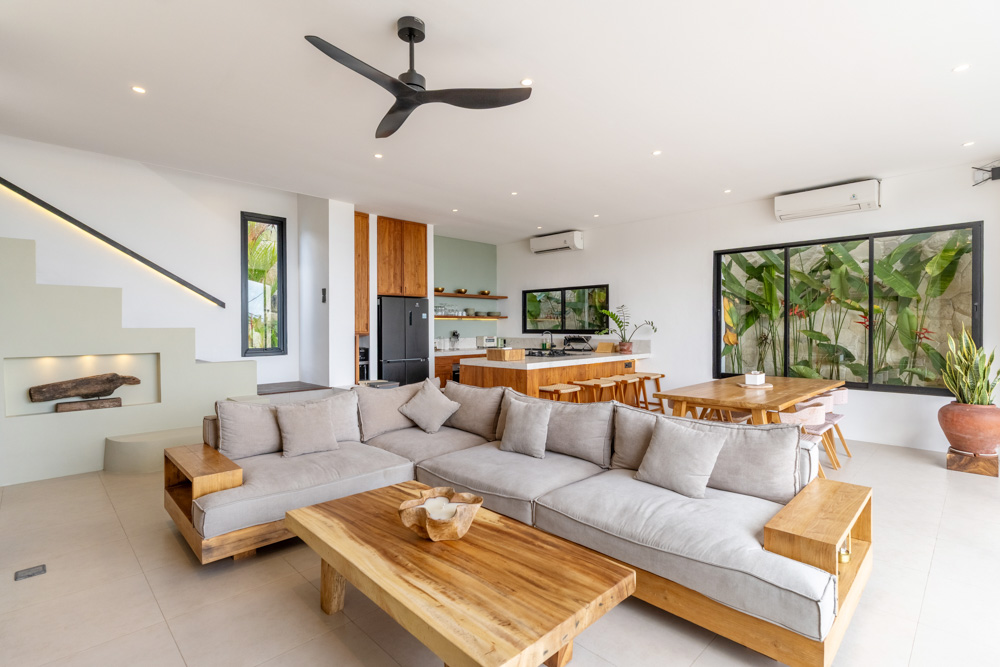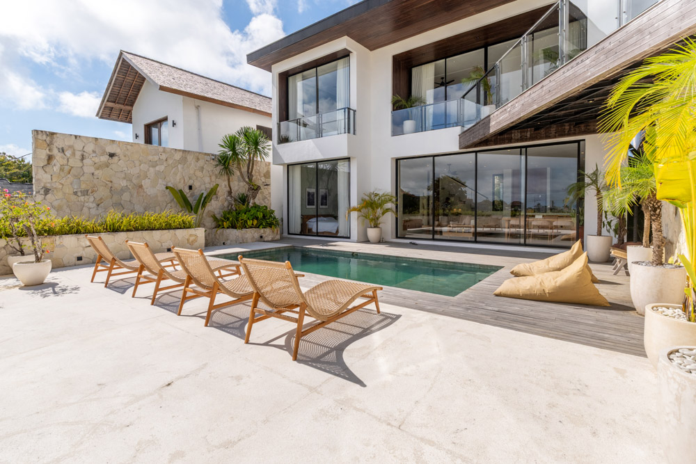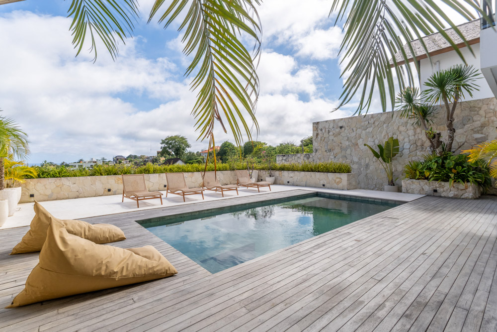Perchée dans une zone paisible près de la plage de Melasti, la Solena House propose une version sophistiquée des maisons à vendre à Bali. Avec des volumes blancs épurés, des murs en pierre naturelle et des finitions chaudes en teck, cette maison de 3 chambres est conçue pour une vie tropicale ouverte avec une touche de modernité distincte.