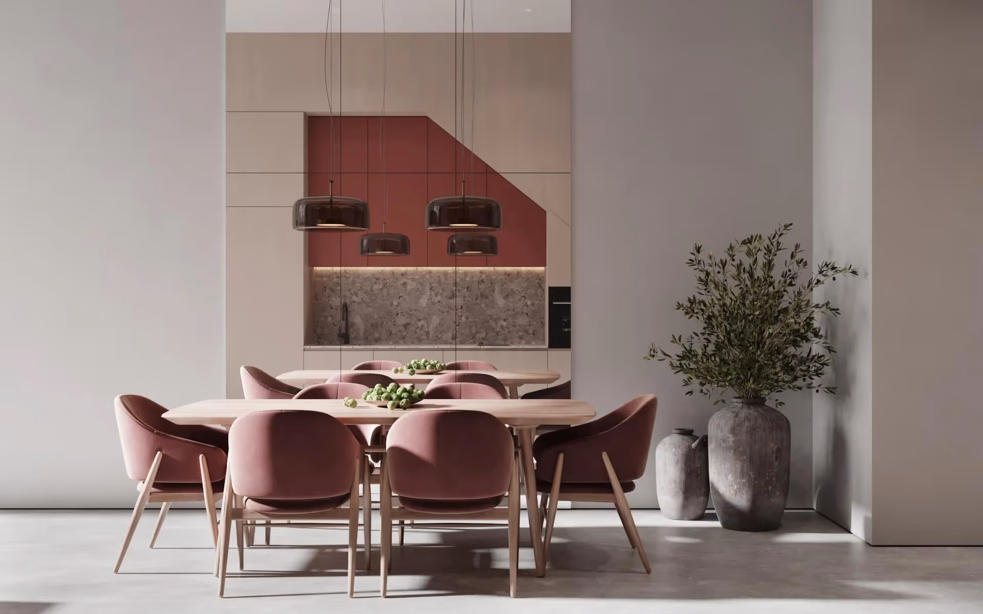 Spanning 165 m² of building space on 100 m² of land, the townhouse is designed with striking geometric lines, floor-to-ceiling glass, and high-end finishes. The open-plan living and dining areas flow seamlessly into the kitchen, while the bedrooms are styled in calming tones with modern storage solutions. Bathrooms feature sleek stone and wood accents, creating a spa-like ambiance.
