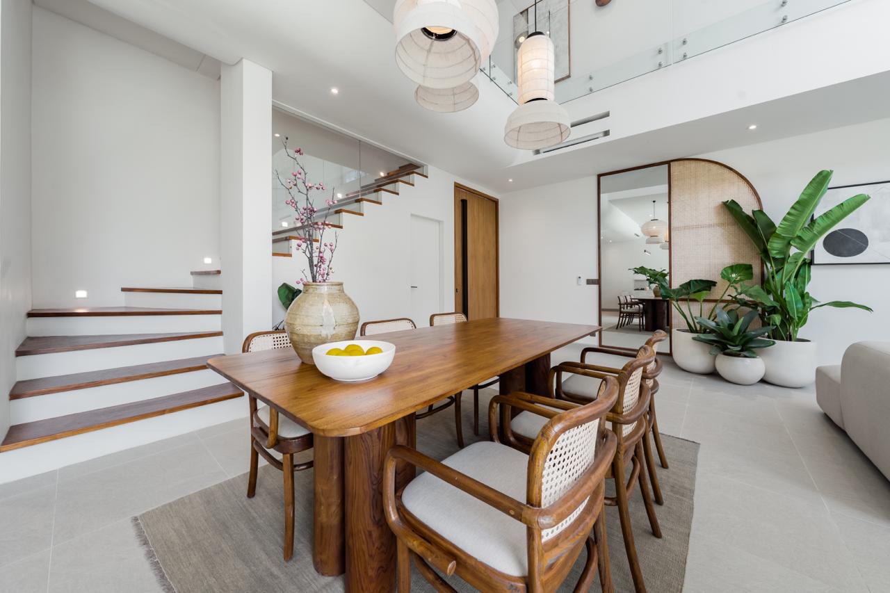 Designed for refined tropical living, this off-plan freehold villa in Pandawa offers a seamless blend of elegance and comfort. Spread across 800 m² of land, the 354 m² home features four bedrooms, each with ensuite bathrooms, plus an additional guest bathroom. The architecture incorporates natural stone, soaring thatched ceilings, and expansive glass doors that frame lush garden and pool views.