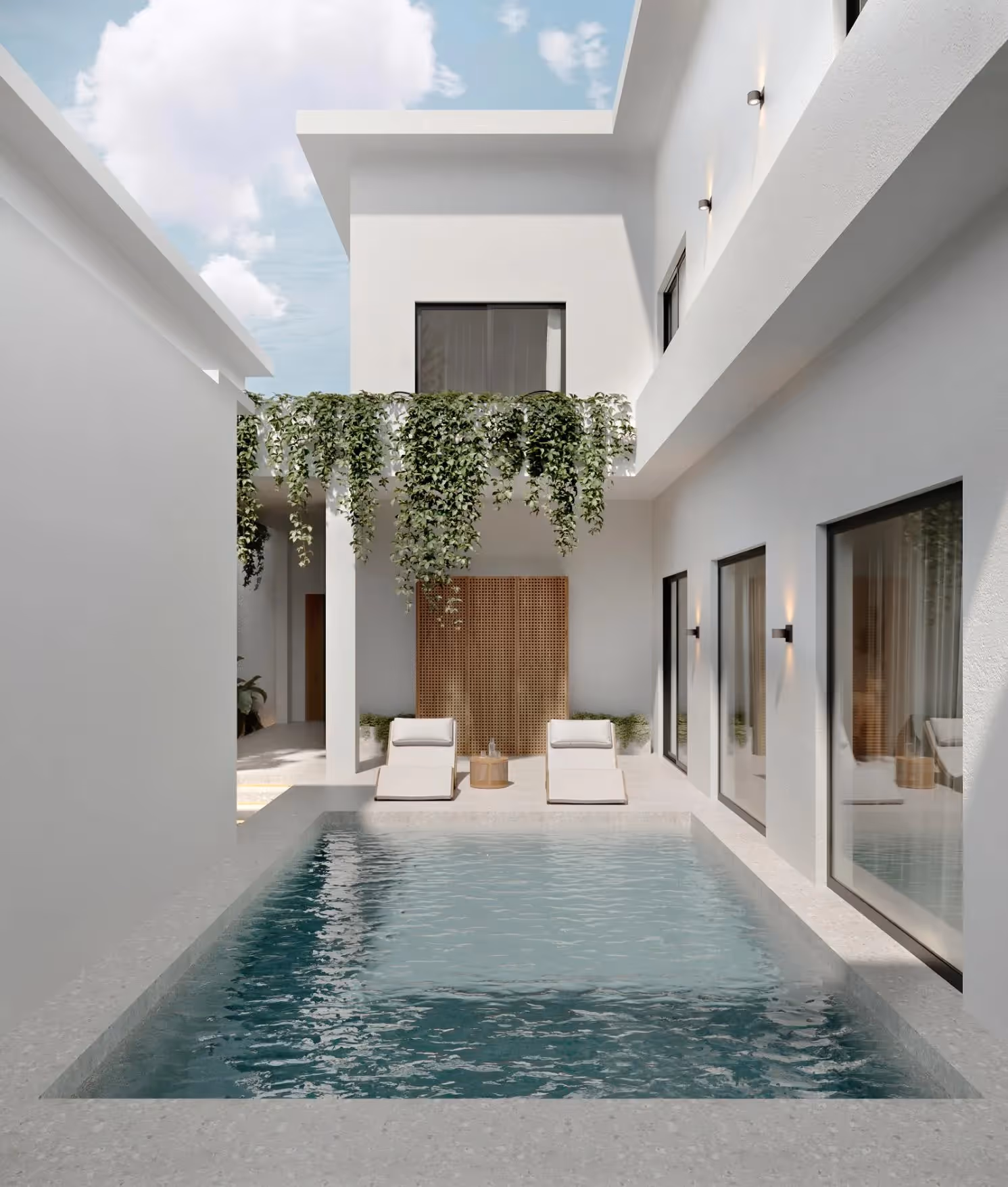 Kavya in Melasti — это частная вилла с 3 спальнями и 3,5 ванными комнатами, предлагающая современную жилую площадь 239 м² на участке площадью 224 м². Вилла полностью меблирована и готова к заселению к февралю 2025 года. К услугам гостей собственный бассейн, лаундж на крыше и частная парковка. Идеально подходит для стильной резиденции или долгосрочной инвестиции в одно из самых привлекательных прибрежных мест Бали.