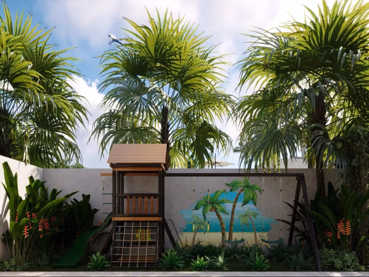 Каждая спальня просторна и прекрасно обставлена, а ванные комнаты отделаны премиальной отделкой и сантехникой курортного качества. Жилье на открытом воздухе находится на возвышенности: здесь есть собственный бассейн, тенистая беседка, обеденная зона с барбекю, небольшой бассейн на крыше с шезлонгами и специальная детская игровая площадка.